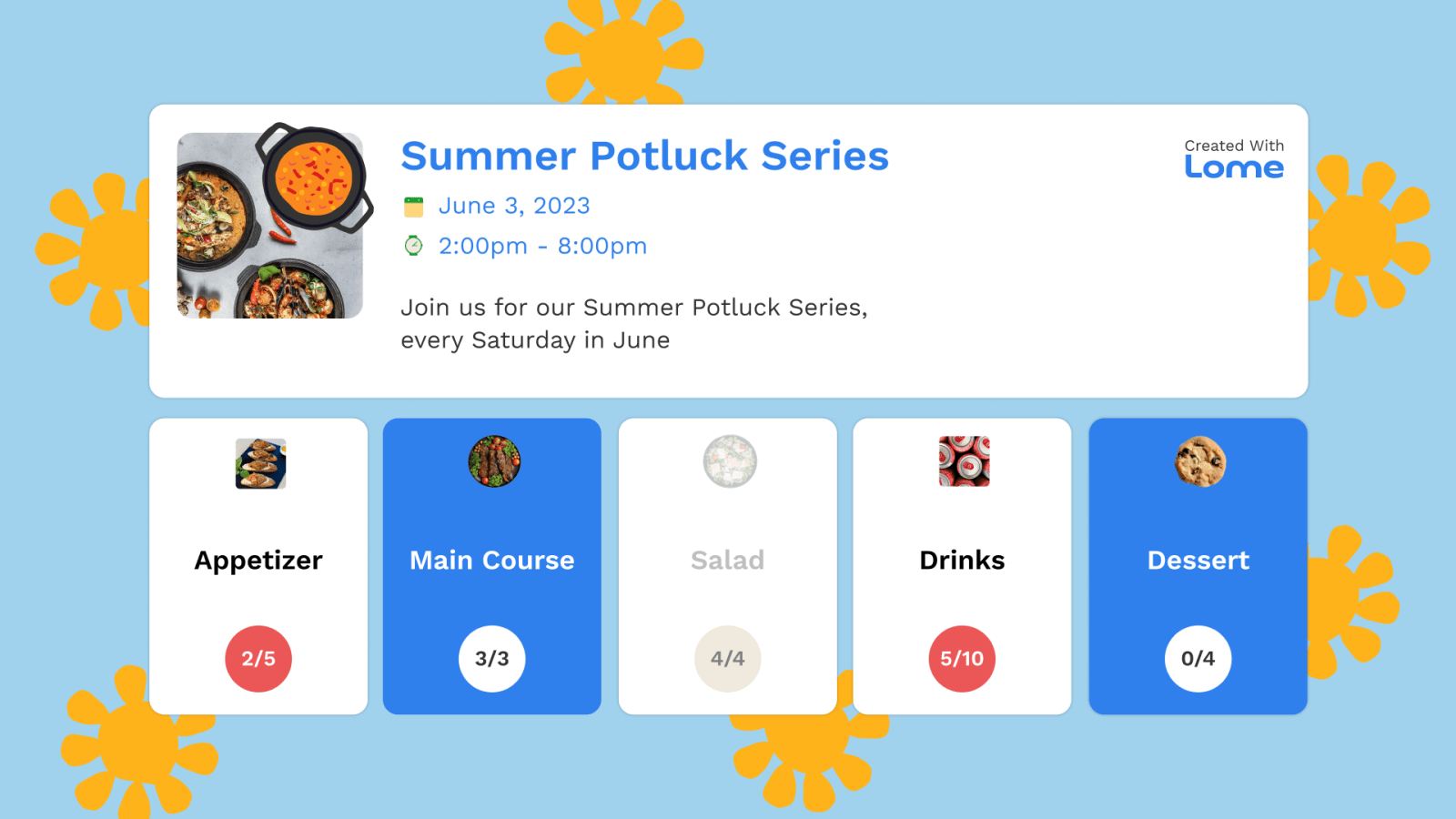 Tools like Lome let you create a free sign-up page in minutes, share it with a link, and track who's bringing what — no app download required for your neighbors. That matters when your audience ranges from college students to retirees.
